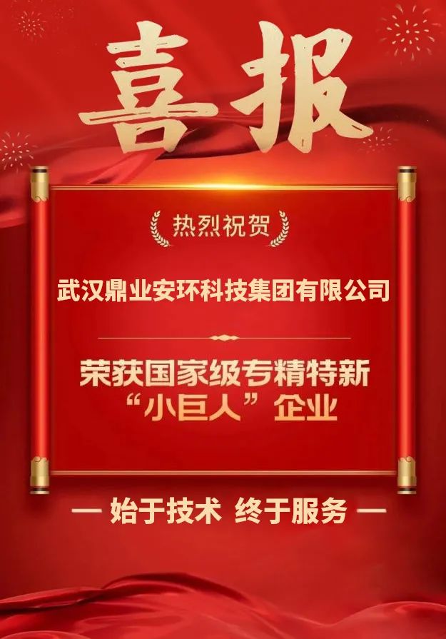 2023年7月14日,國家工信部發(fā)布了第五批專精特新“小巨人”企業(yè)名單,武漢鼎業(yè)安環(huán)科技集團有限公司(原武漢鼎業(yè)環(huán)保工程技術(shù)有限公司)憑借在安全環(huán)保領(lǐng)域的綜合實力和科技創(chuàng)新能力,榮獲國家級專精特新“小巨人”企業(yè)!